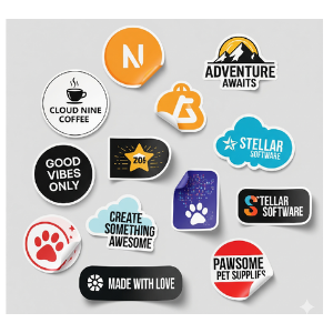 Labels for bottled water, coffee cups, or freebies with event branding.